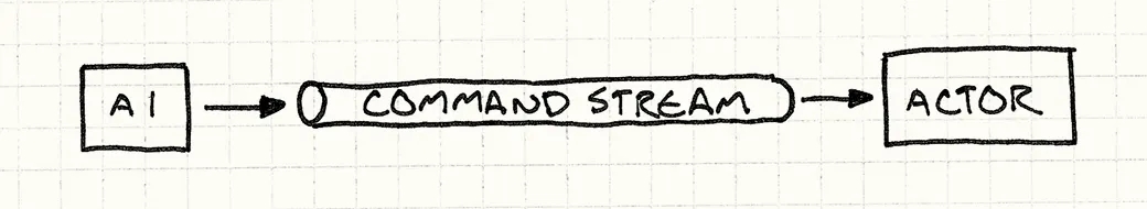 입력 핸들러나 AI 같은 코드에서는 명령 객체를 만들어 스트림에 밀어 넣는다. 결론적으로 엑터에서는 명령 객체를 받아서 동작을 실행한다.
