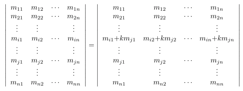 어떤 행(또는 열)에 다른 행(또는 열)의 배수를 더해도 행렬식 값은 변하지 않습니다. 이는 행렬 연산에서 매우 유용한 성질로, 행렬식 계산을 단순화하는 데 사용됩니다.