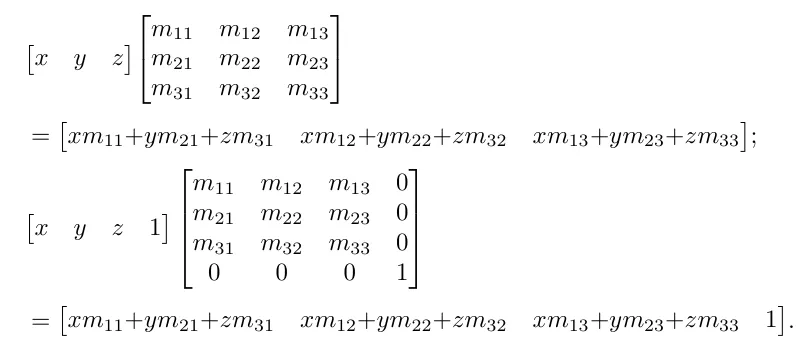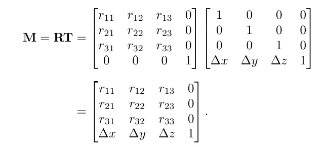 마지막 행은 추가적인 이동 성분을 포함하며, 변환이 특정 위치에서 수행됨을 나타냅니다.