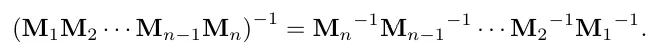 행렬 MMM에 대해 역행렬 M−1M^{-1}M−1이 존재하면, 다음과 같은 성질을 만족합니다: