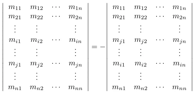 행렬에서 임의의 두 행 또는 두 열을 교환하면 행렬식의 부호가 바뀝니다.