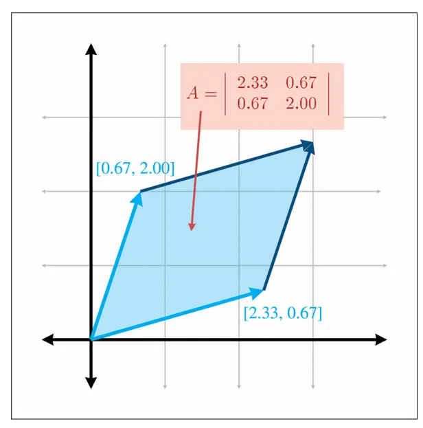 따라서 2차원 행렬의 행렬식은 변환된 기저 벡터가 형성하는 평행사변형의 **부호가 있는 면적(signed area)**입니다.