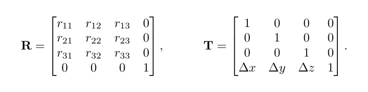 이 변환을 수행하는 4x4 행렬은 다음과 같습니다:
