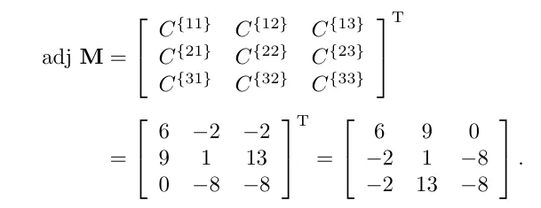 전치: 여인자 행렬을 전치하여 수반행렬(adjM)을 구합니다.