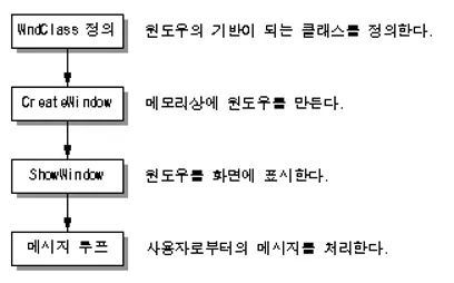 도스에서는 main 함수만으로도 프로그램을 작성할 수 있지만 윈도우즈에서는 아주