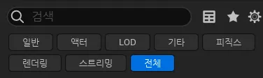 바로 다음 아래에는 디테일 패널에서 어떤 정보만을 보여줄것인지 선택할 수 있는 탭이 있습니다. 특정 원하는 정보만 골라서 보는 것도 가능합니다.