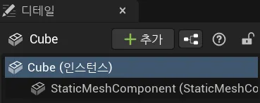 디테일 패널 제일 상단에 다음과 같은 항목이 보입니다. 이 항목은 선택한 엑터가 어떤 컴포넌트를 가지고 있는지 보여줍니다.
