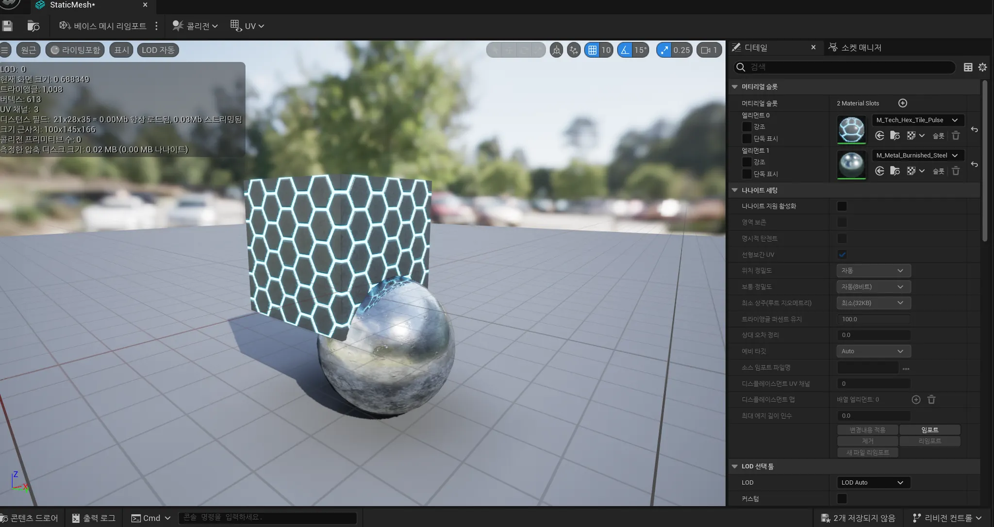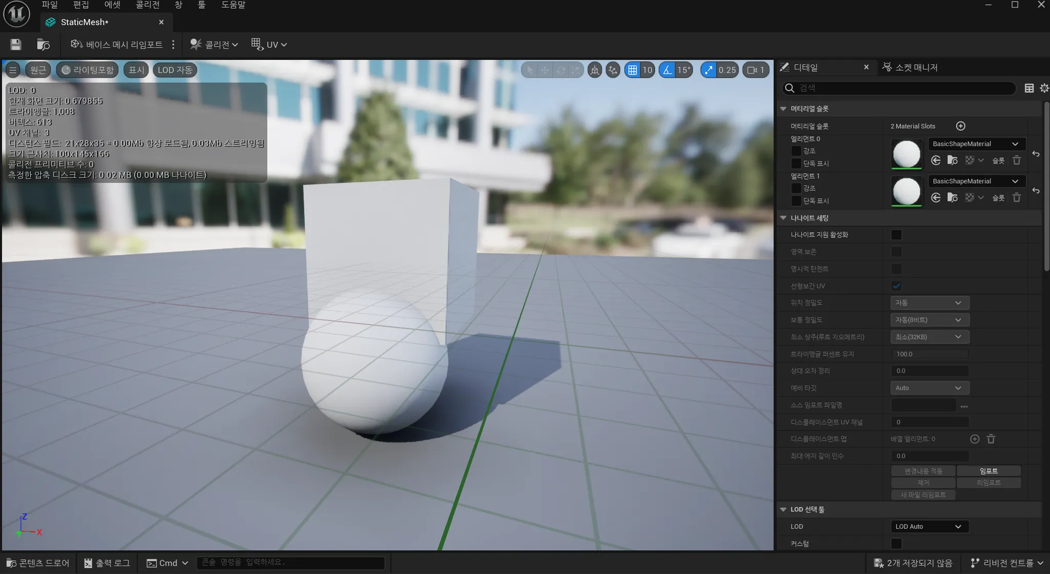 해당 스태틱 메쉬를 더블클릭하여 실행하면 해당 메쉬를 편집 할 수 도 있습니다.