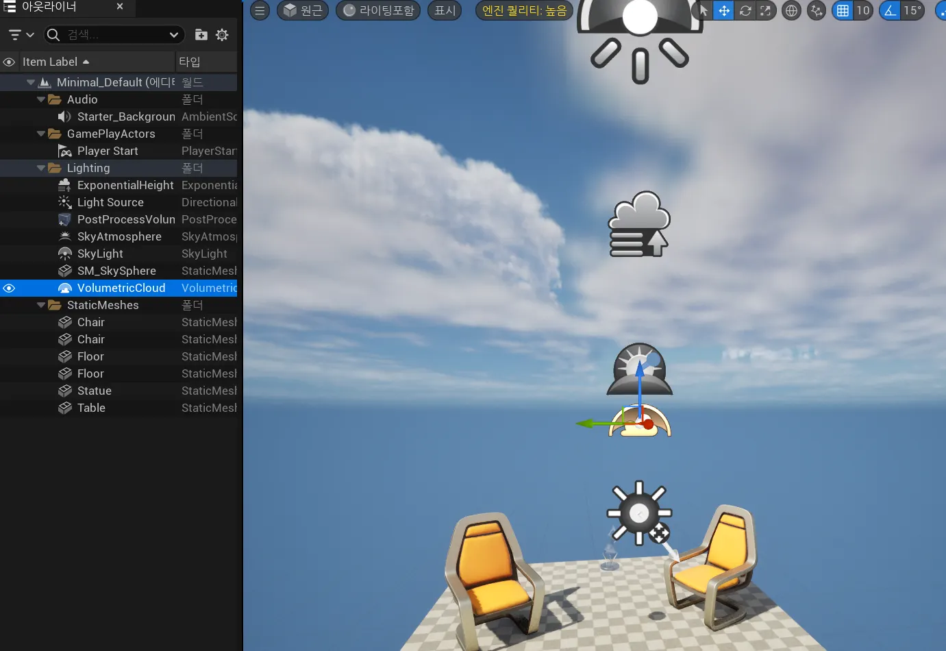 기본적으로 레벨이 생성되면 처음부터 라이트가 배치 되어 있습니다.