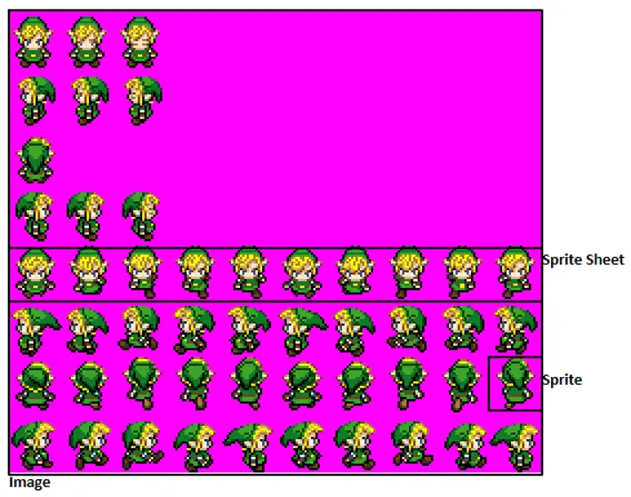 애니메이션을 생성할때 해당 이미지에서 시작점을 기준으로 한칸씩 이동하면서 그림별로 Sprite정보를 Spritesheet에다가 저장한다.