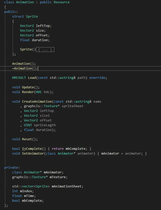 Animation 클래스는 Sprite Image를 가지고 있다.