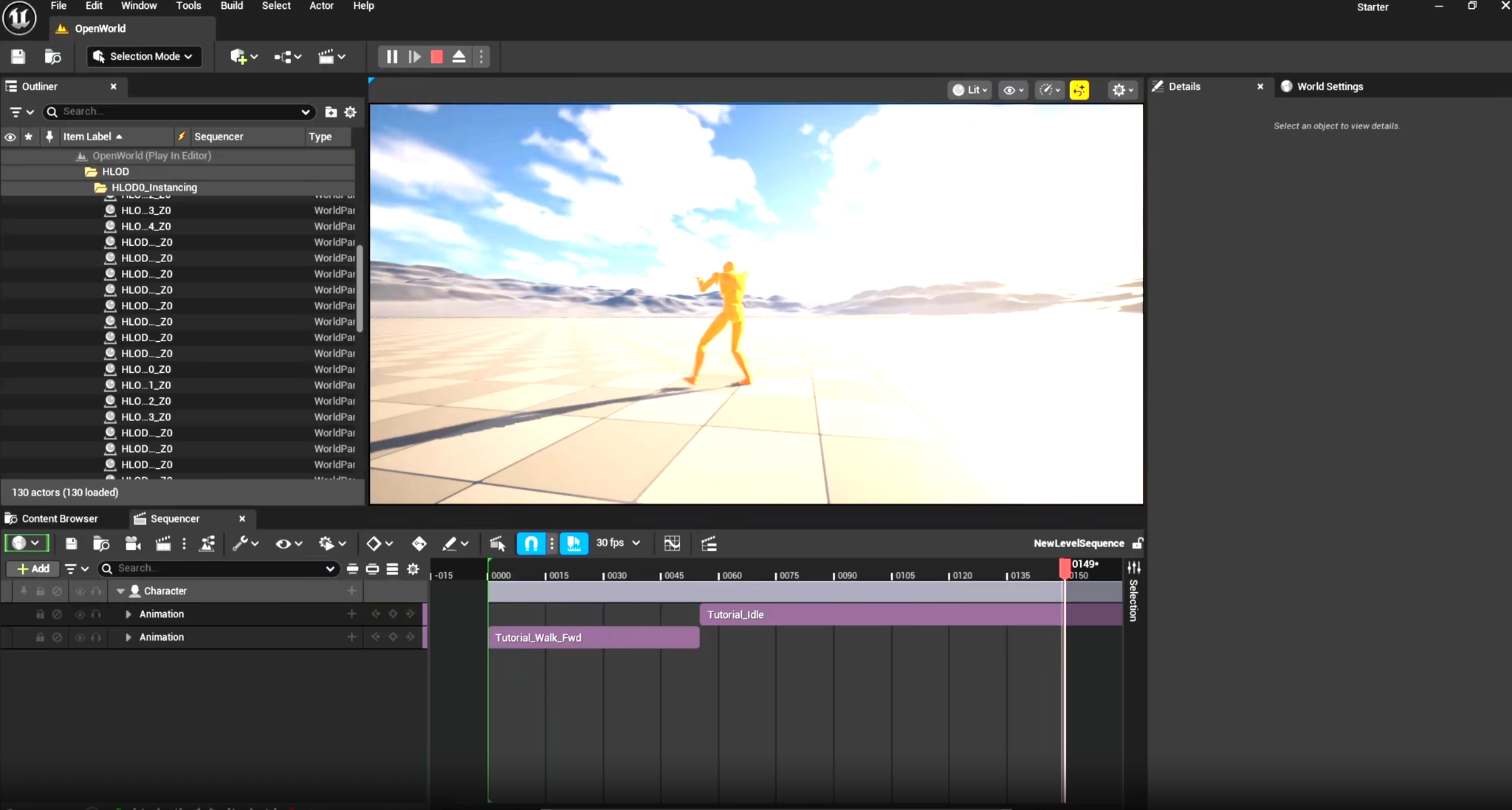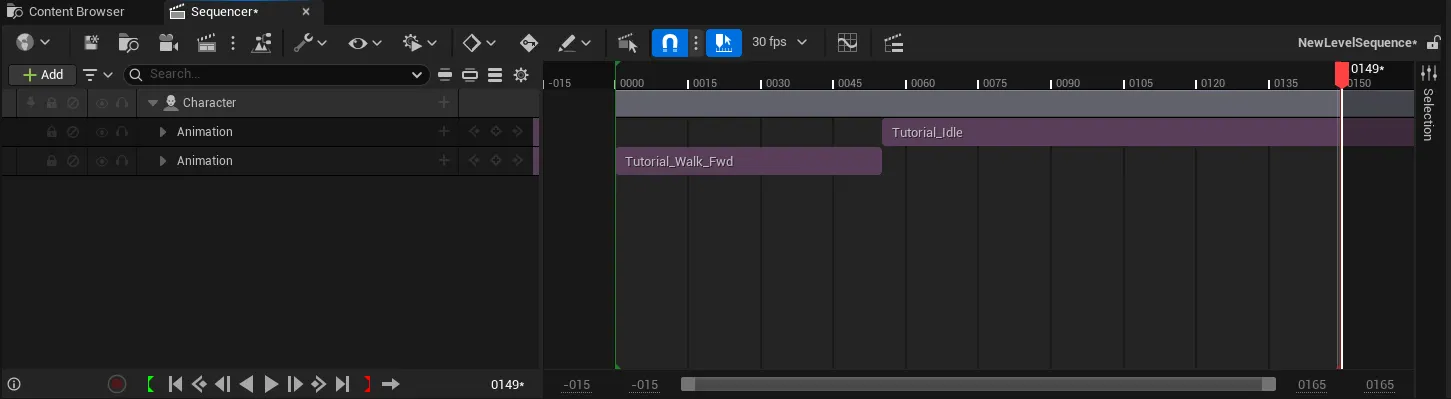 이러한 방식으로 시퀀서를 사용하면 캐릭터가 특정 시점에 어떤 애니메이션을 수행할지 타임라인 기반으로 정확하게 제어할 수 있습니다. 단, 시퀀서는 주로 컷씬이나 미리 정해진 시나리오에 적합하며, 게임플레이 중 플레이어 입력에 반응하는 애니메이션은 앞서 설명한 애니메이션 블루프린트를 사용하는 것이 더 효과적입니다.