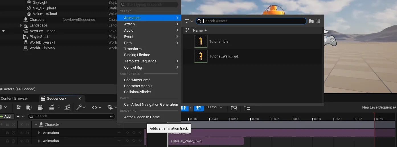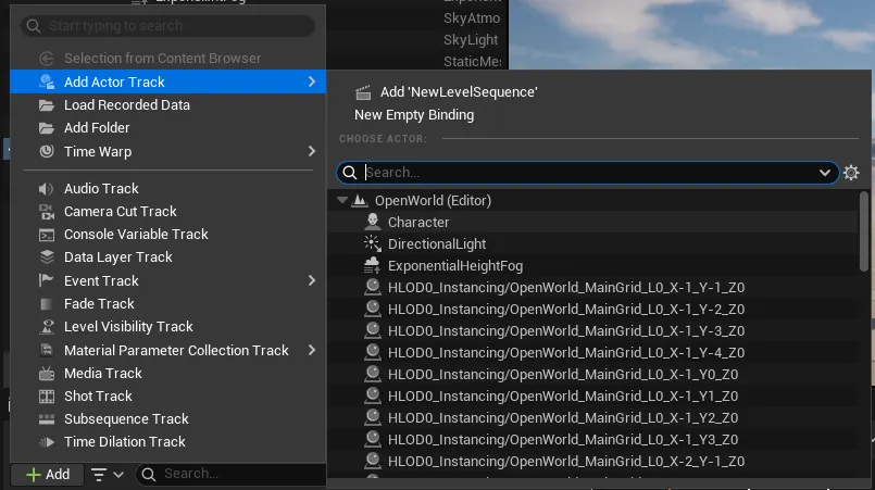[액터] → [캐릭터] 옵션을 선택하여 캐릭터 트랙을 추가합니다.