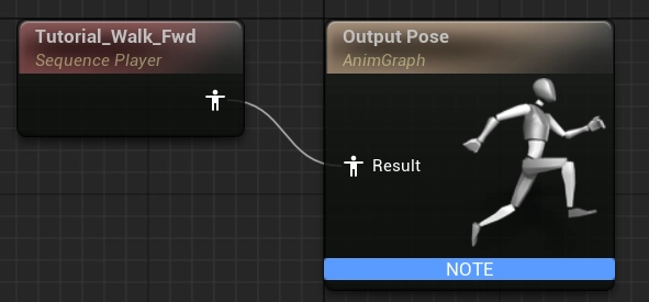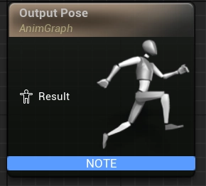 이 노드에는 result라는 입력이 하나 준비 되어 있습니다. 이곳에 [애니메이션 포즈]를 연결하면 됩니다. 애니메이션 에셋으로 재생되는 애니메이션을 최종적으로 나타내는 값이라고 생각하면 됩니다.