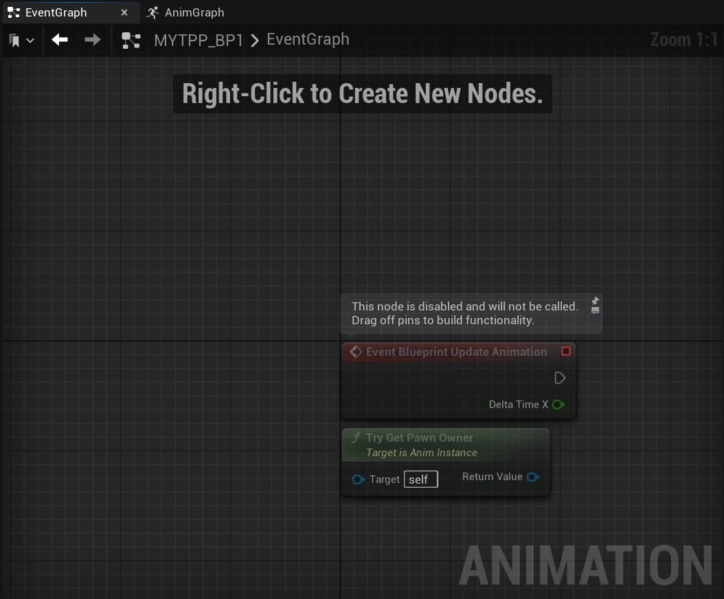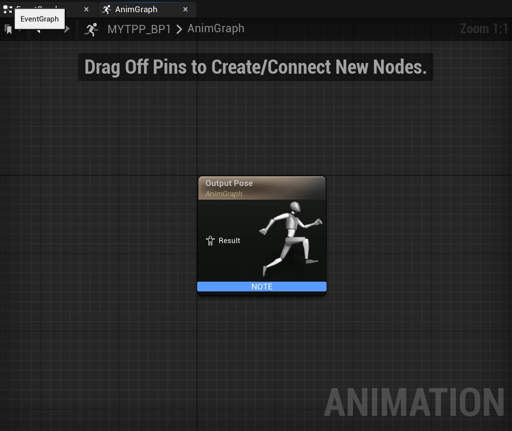 그러면 2개의 그래프가 열려 있습니다. [이벤트 그래프]와 [AnimGraph]가 열려 있습니다.