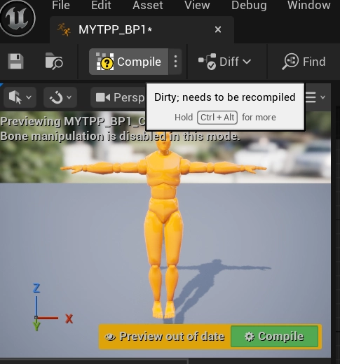캐릭터 블루프린트 열기: 애니메이션 블루프린트를 사용할 캐릭터 블루프린트를 엽니다.