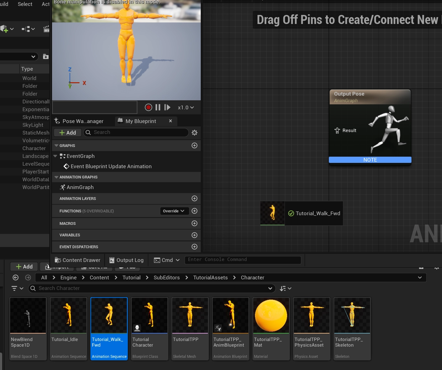 [Tutorial_Walk_Fwd]를 블루프린트 쪽으로 드래그앤 드릅으로 옮겨주세요.