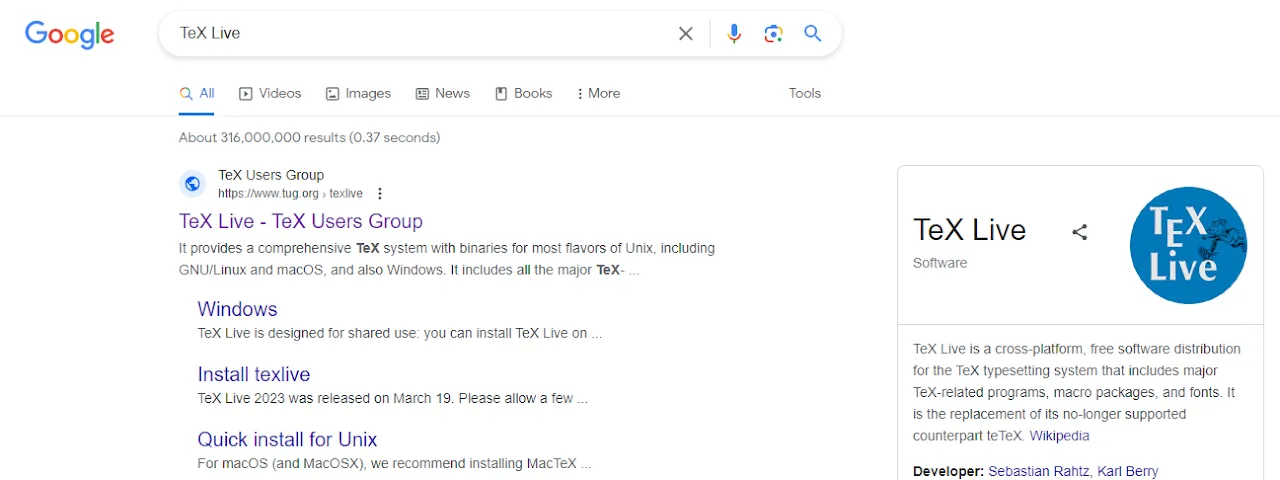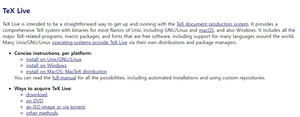 Google에서 TeX Live를 검색하여 사이트에 접속하세요.