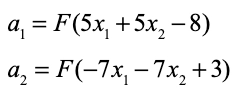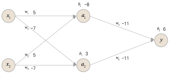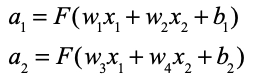 위 식에서 알 수 있듯이 뉴런의 출력은 가중치와 편향에 대한 함수입니다. 그렇다면 a1과 a2를 이용해 이 신경망의 출력을 표현해보겠습니다.