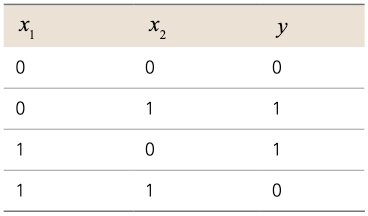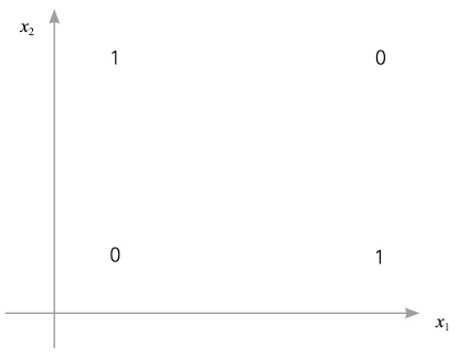 단층 신경망은 다양한 형태의 데이터를 분류할 수 있습니다. 그러나 모든 형태의 데이터에 대해 분류할 수 있을까요? 아쉽지만 단층 신경망은 분류 가능한 데이터 형태보다 분류할 수 없는 데이터 형태가 더 많습니다. 다음과 같은 (단층 신경망으로 분류할 수 없는) 데이터의 분포를 생각해봅시다.