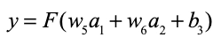 퍼셉트론의 출력값 y는 F(x1w 1 + x2 w2 + b)가 됩니다. 여기서 F(x1w 1 + x2 w2 + b)는 활성화 함수입니다. 여기서 가중합 a는 a = (x1w 1 + x2 w2 + b)로 표현됩니다.