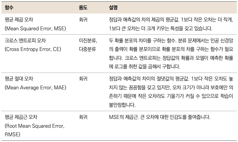손실 함수는 정답과 신경망의 예측의 차이를 나타내는 함수입니다.