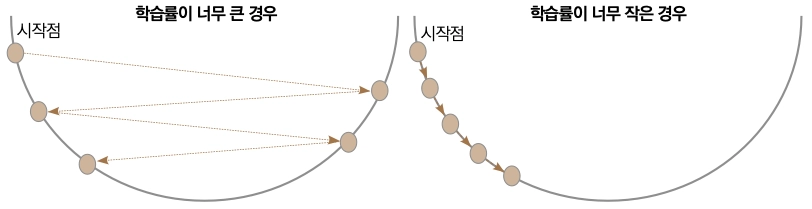 학습률(learning rate)과 보폭(step size): 보폭은 학습률과 기울기의 곱으로 표현됩니다. 즉 기울기가 클수록 보폭도 커지고, 기울기가 작을수록 보폭도 작아집니다.