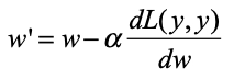 여기서 y는 가중치에 관한 함수라는 것을 주의해주세요. 위 수식의 α가 학습률입니다. w′은 가중치의 새로운 값을 의미합니다. 이때 학습률과 기울기를 곱하면 가중치가 변하는 크기를 나타내는 보폭이 됩니다.