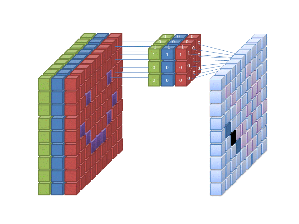 이해를 돕기 위한 비유: 색깔이 있는 투명 필름을 통해 특정 색상의 글자만 걸러내듯이, CNN은 이미지에서 중요한 패턴과 특징만을 선택적으로 추출합니다. 불필요한 정보는 제거하고 분류에 필요한 핵심 특징만 남기는 것입니다.