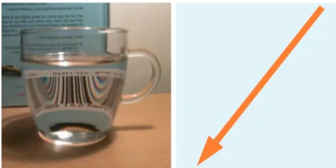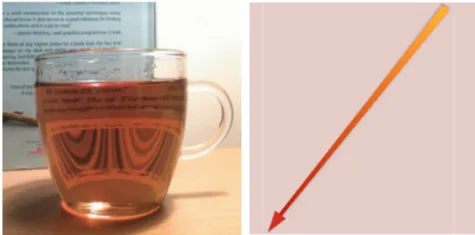 그림 3: 물이나 유리와 같은 투명 매질 속의 빛(왼쪽)은 동일한 강도와 색상으로 직선으로 계속 전파됩니다(오른쪽).