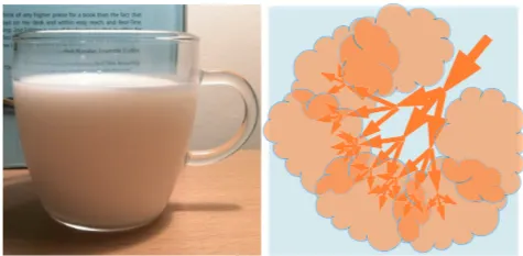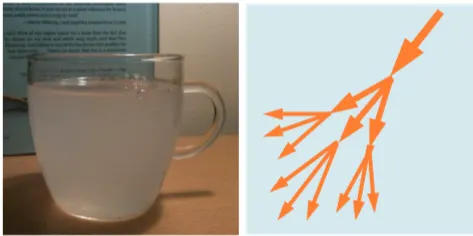 그림 8: 반투명하거나 불투명한 매질 속의 빛(왼쪽)은 전파됨에 따라 방향이 완전히 무작위화됩니다(오른쪽).