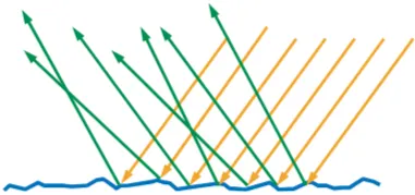 [Figure 15] 거시적으로 볼 때, 광학적으로 평평하지 않은 표면은 빛을 여러 방향으로 반사(및 굴절)하는 것으로 취급할 수 있습니다.