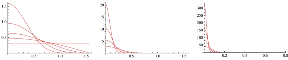 매개변수 값을 낮추면 트로우브릿지-라이츠보다 훨씬 더 뾰족한 곡선(더 좁은 피크와 더 긴 꼬리)이 생성됩니다. 이는 그림 34에서 확인할 수 있습니다.