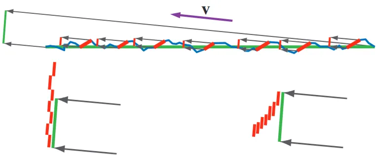 Figure 17 하단: 픽셀이 진입-출구 거리보다 작습니다. 이 경우 각 지점의 셰이딩은 다른 지점에 입사한 빛의 영향을 받습니다.
