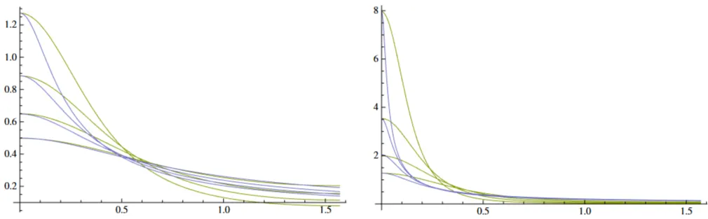 이는 두 개의 매개변수 (원 논문의 "B" 매개변수에 해당)과 (원 논문의 "C" 매개변수에 해당—"A" 매개변수는 스케일 팩터이므로 정규화에 포함됨)를 가집니다. 저자들은 정규화 계수를 공개하지 않았지만, 저는 Mathematica를 사용하여 생성할 수 있었습니다: