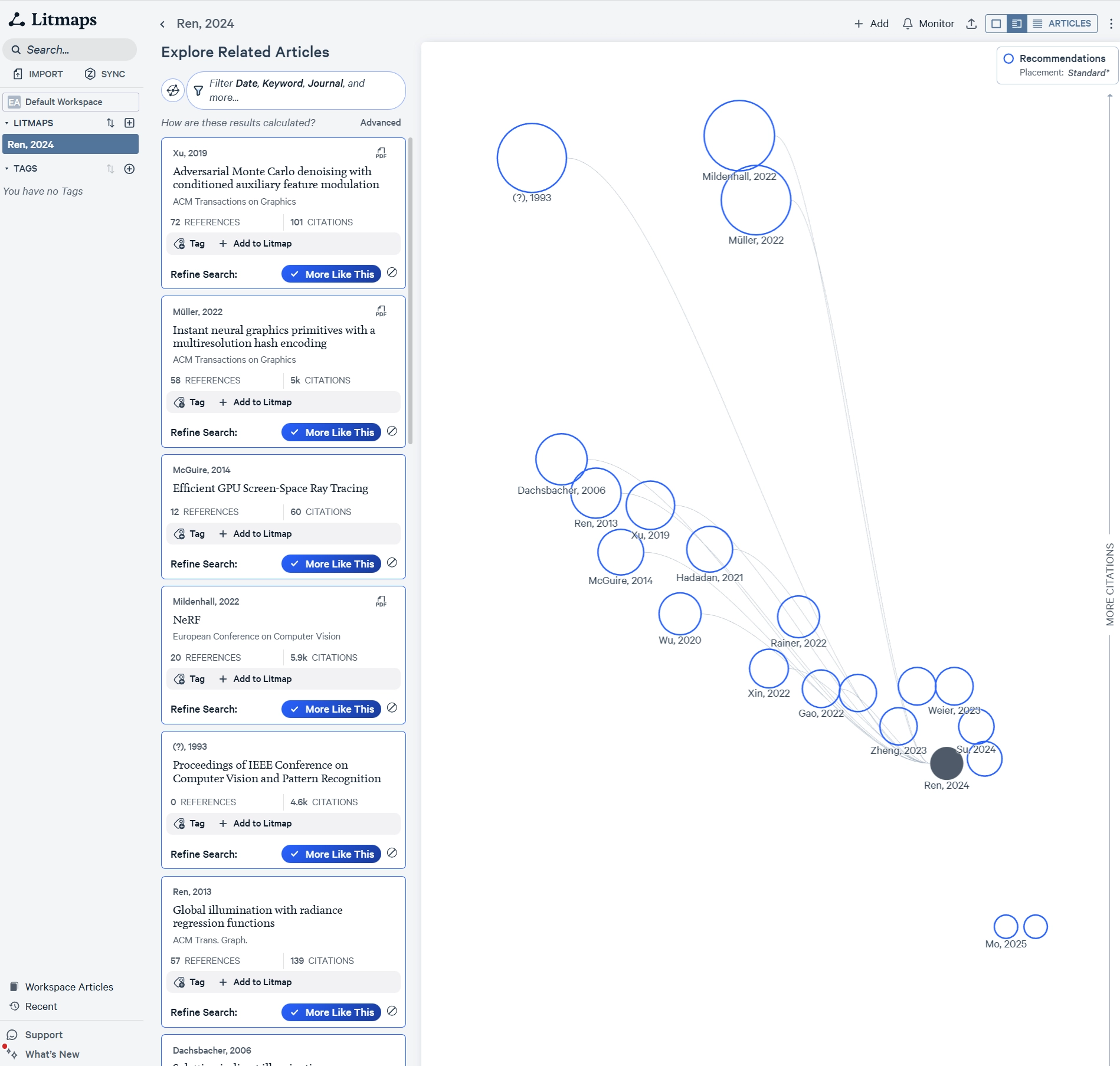 Litmaps는 개인화된 논문 추천 시스템으로, 사용자가 선택한 핵심 논문들(Seed Papers)을 기반으로 관련 문헌을 지속적으로 추천하고 추적하는 도구입니다. Connected Papers의 일회성 시각화와 달리, Litmaps는 지속적인 문헌 모니터링에 초점을 맞춥니다.