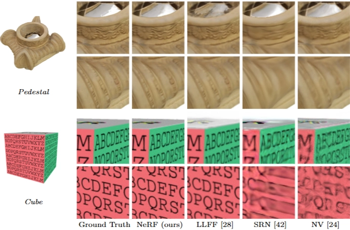 다만 볼륨 기반 기술은 고해상도 이미지를 처리할 때 근본적인 계산·메모리 한계 에 직면합니다. 이산 샘플링을 사용하는 이상, 해상도를 올리기 위해 더 촘촘하게 3D 공간을 샘플링해야 하며, 이에 따라 시간 및 공간 복잡도가 급격히 증가합니다. 본 논문은 이러한 한계를 완화하기 위해, 연속적인 볼륨을 복셀 그리드가 아니라 완전 연결 신경망의 파라미터 내부에 인코딩하는 방식(NeRF)을 제안합니다. 이로써 높은 품질의 렌더링을 제공하면서도 저장 비용을 크게 줄일 수 있습니다.