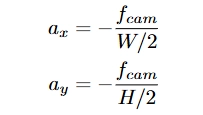 여기서 W와 H는 픽셀 단위의 이미지 너비와 높이이며, fcam은 카메라의 초점 거리입니다.