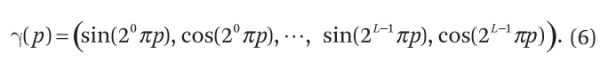 이를 완화하기 위해, 본 논문은 입력 좌표를 그대로 MLP에 넣는 대신, 고주파 성분을 포함한 더 풍부한 표현이 가능하도록 위치 인코딩(positional encoding) 함수 를 적용합니다. 즉, 모델은