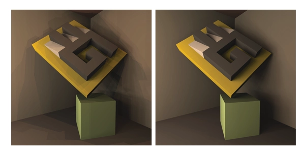 mipmaps)는 저해상도 버퍼에서 음영 처리되고, 세부 영역은 고해상도 버퍼에서 처리됩니다. 해상도 피라미드는 최종 이미지에 적응된 양선형 보간 기법을 사용하여 결합됩니다. 교차 샘플링 접근 방식은 VPL에서 그림자 계산과 직교하며, 다중 해상도 스플래팅은 매끄러운 음영 신호를 가정합니다(즉, 그림자 경계를 감지하지 않으므로 경계를 넘어 흐려집니다).