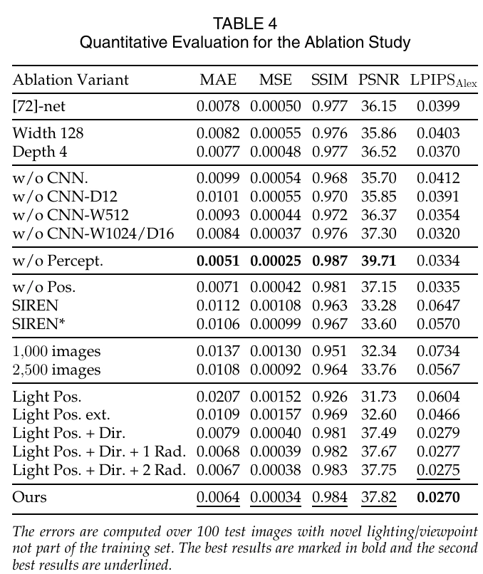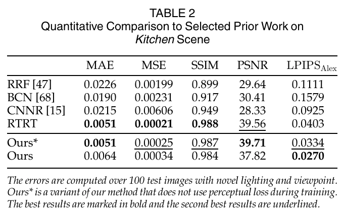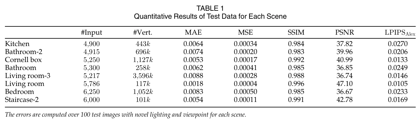 오류는 각 장면에 대해 새로운 조명과 시점으로 100개의 테스트 이미지에서 계산했어요.