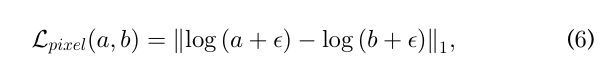 여기서 X는 두 항목의 균형을 맞추기 위한 가중치이고, 구현에서는 X를 1.0으로 설정했어요. 픽셀 손실 Lₚᵢxel은 로그 인코딩된 픽셀 값에 대한 픽셀당 L₁ 거리로 정의돼요