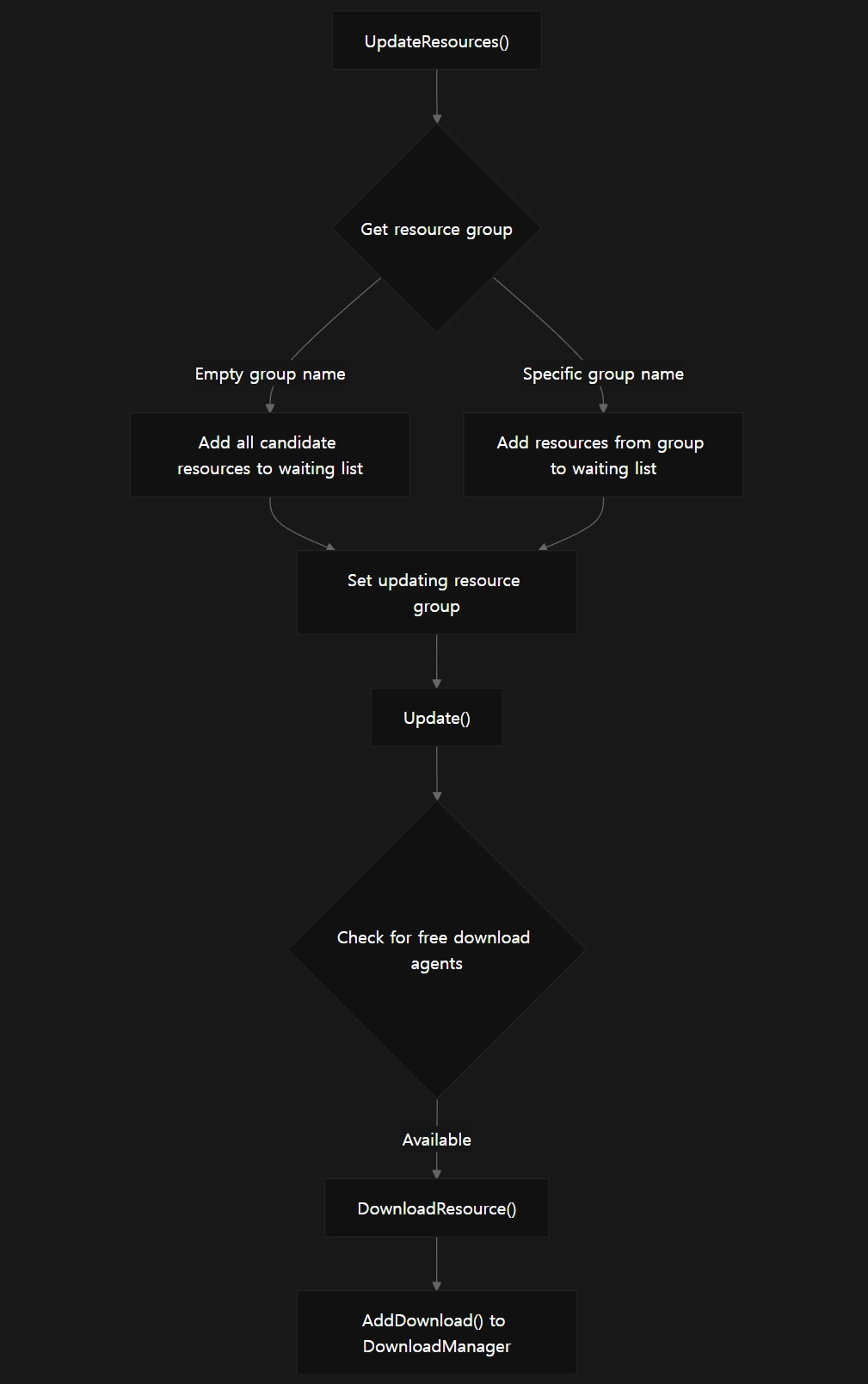 UpdateResources 호출 → 개별 리소스 다운로드 시작