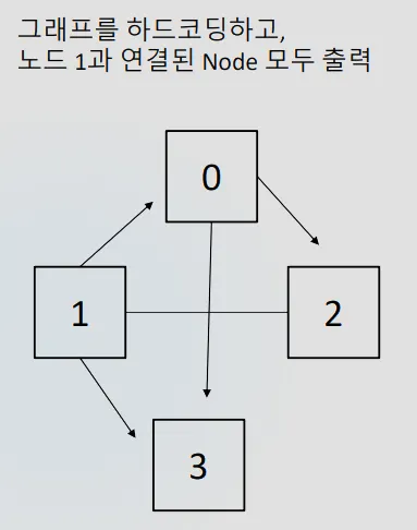 다음은 인접행렬을 이용해 그래프를 표현하고 1번 노드가 연결되어있는 다른노드의 종류를 표현하는 예제 코드이다