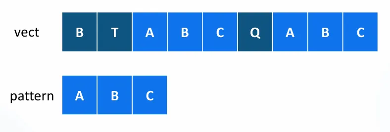 일치 확인: 모든 문자가 일치하면 패턴 발견