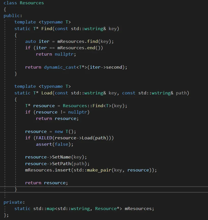 그래서 우리 리소스를 관리하는 클래스 Resources는 std::map을 이용해서 관리할 것 이다
