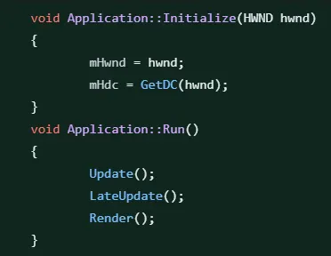 그리고 Run() 함수에서는 Update(), REnder()를 여러 단계로 나누어서 처리 해주고 있다.