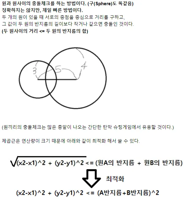 네모네모 충돌과 원원충돌 네모,원 충돌등이 있다.