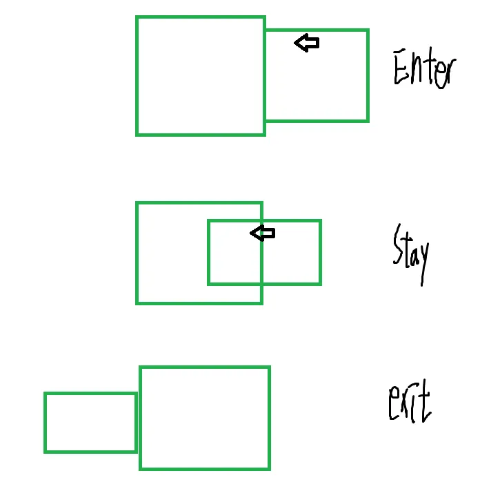 충돌이 막 시작한 접점 상태, 서로가 충돌중인 상태, 막 충돌을 빠져나온 상태