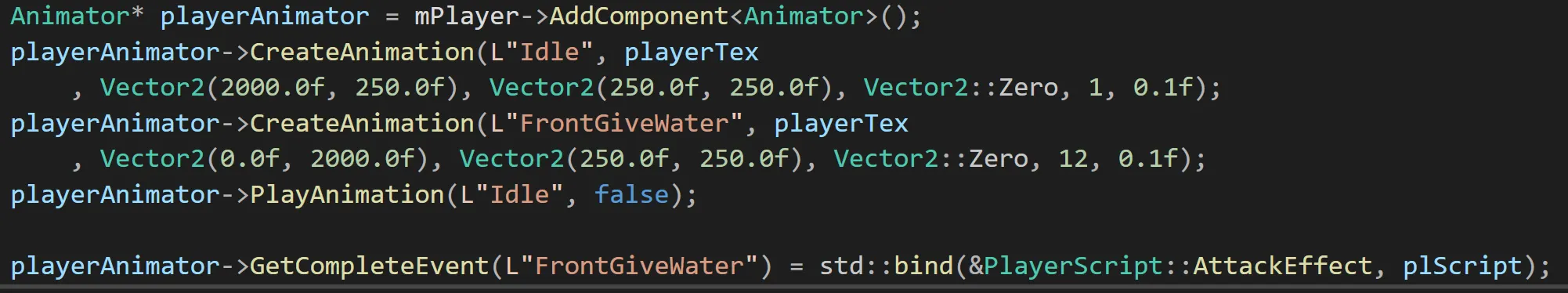 우리 게임 엔진에서는 애니메이션 콜백 기능을 제공합니다. 이를 사용하여 애니메이션 재생의 몇 가지 기본 사항을 처리할 수 있습니다. 이벤트에 등록하면Animation 에 이벤트를 호출 시킬 수 있습니다.